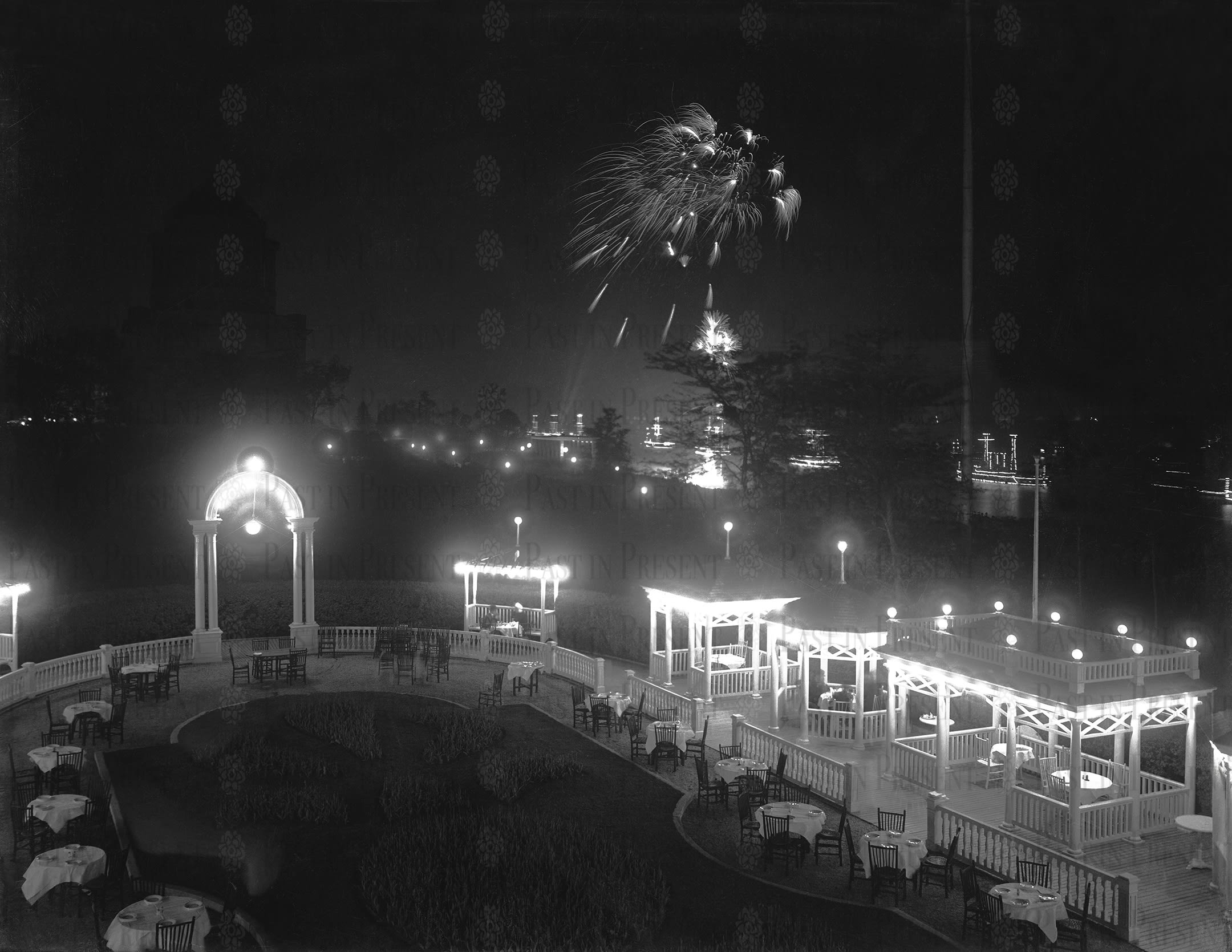 Hudson-Fulton Celebration Fireworks Lit Up the Night Sky, Over Hudson River Across From Grand Tomb Adding a Magical Atmosphere to the Festivities and Drawing Widespread Public Admiration NYC, 1909 -